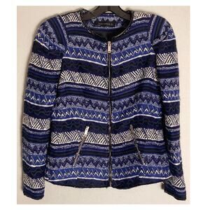 Zara Blue Embroidered Jacket Upper West Side Marant Chic Sz L ~ Repair neckline