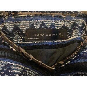 Add a touch of elegance to your wardrobe with this stunning blue, black and white embroidered jacket from Zara. Featuring intricate embroidery, this versatile piece exudes refined style with a hint of boho charm a la Isabel Marant. Perfect for layering, it can transition seamlessly from day to evening, whether you're running errands or attending a lunch on the Upper West Side. A must-have for any lover of chic, timeless fashion.