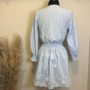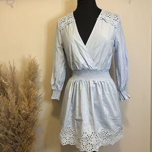 Zara Blue Embroidered Summer Long Sleeve Mini Dress