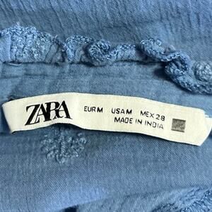 Zara Blue Eyelet Embroidered Ruffle Frill Peplum Long Sleeve Blouse Shirt Top M