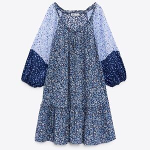 Zara Blue Floral Ditsy Ruffle Tiered Dress Sz. XS BNWT