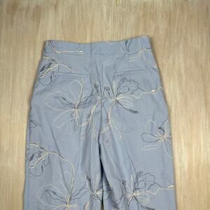 Zara Blue Floral Embroidered High Waist Elegant Chic Linen Blend Pants Medium