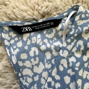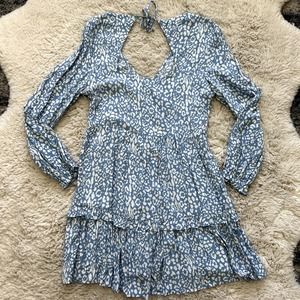 Zara Blue Floral Long Sleeve Ruffle Boho Dress with Keyhole Back and Tie Size M