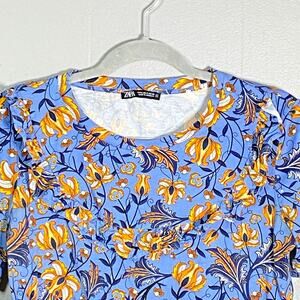 Keywords: Zara blue floral top, women's peplum blouse, casual floral print shirt, spring summer fashion, boho chic style, vintage inspired top, lightweight cotton blouse, elegant floral blouse, trendy short sleeve top, colorful floral print clothing