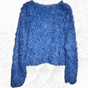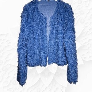 Zara Blue Fluffy Textured Long Sleeve Cropped Jacket Size XL