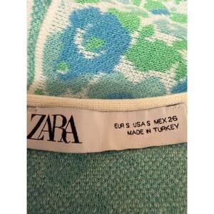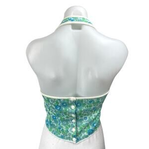Zara Blue Green Floral Halter Sleeveless Scoop Neck Open Back Crop Top Size S