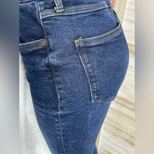 Experience the perfect blend of style and comfort with Zara's high rise blue jeans. These jeans feature a sleek slim fit that elegantly tapers from hip to ankle, offering a modern silhouette. Crafted from medium-weight denim with a slight stretch, they provide both durability and ease of movement. The classic indigo blue wash adds a timeless touch to any outfit.