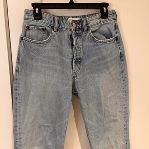 Zara Blue High Rise Raw Hem Straight Leg Jeans Size 6