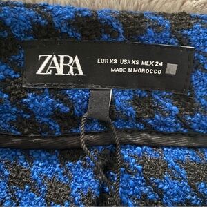 Zara Blue Houndstooth Box Pleat Skort Skirt Nwt Size XS