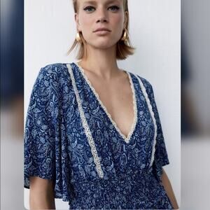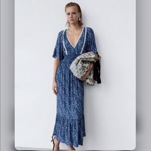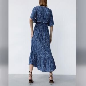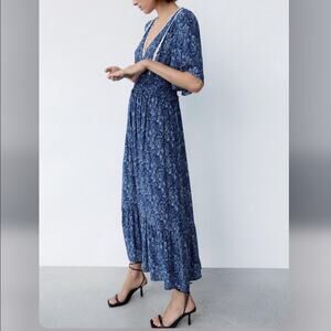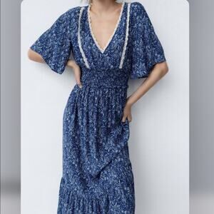 Zara Blue | Indigo Printed Midi Dress Size Extra Small XS