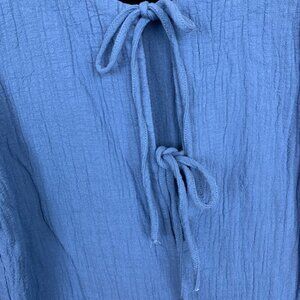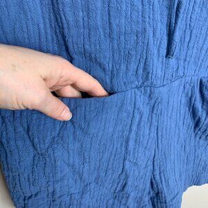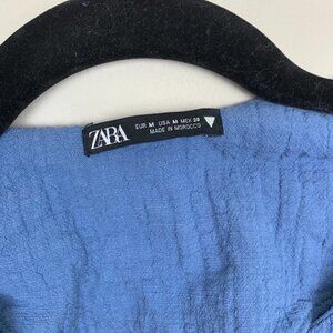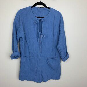 Zara Blue Long Sleeve Short Textured Crepe Romper - Size Medium. Tie front. Can be a swimsuit coverup and the beach or pool. In great condition. Front pockets.