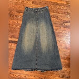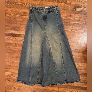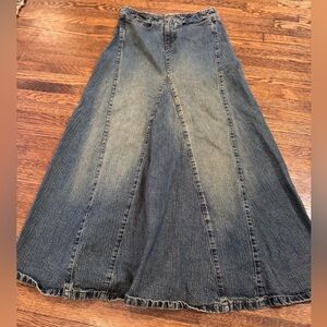 Zara Blue Maxi Flowy Jean Denim Skirt Low Rise Distressed Mermaid Flare Size 2