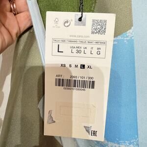 New with tags large blue, white, beige and green dress by Zara in excellent brand new condition.