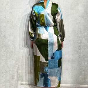 Zara Blue Multicolor Abstract Print Midi Dress Sz L NWT