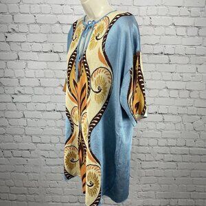 This Zara light pullover sweater is a colorful and bohemian piece perfect for casual or travel occasions. Made from a blend of polyamide and viscose, the soft poncho style features a keyhole neckline, short flared sleeves, and an oversized fit for a relaxed look. The lightweight and stretchy material make it ideal for the fall and spring seasons in a vibrant blue color with a leaf pattern, adding a touch of city chic to your wardrobe.