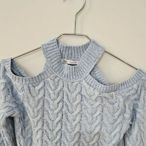 Zara Blue Off-the-Shoulder Sweater Cable Knit