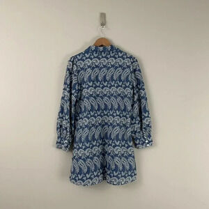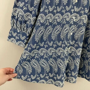 Zara Blue Paisley Embroidered Eyelet Button Down Shirt Dress Size Small
