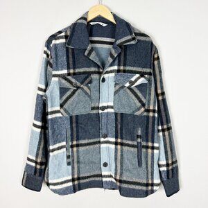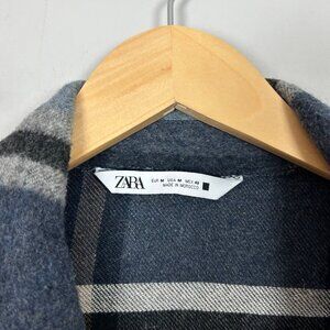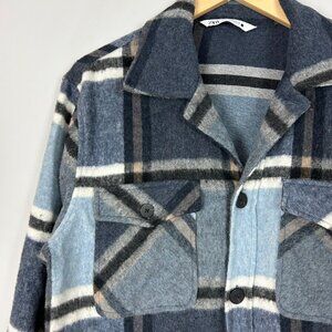 Zara Blue Plaid Wool Blend Shacket Jacket Oversized Size Medium Women's