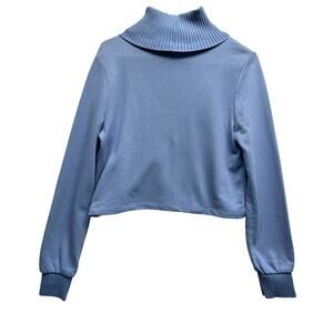 Zara Blue Ribbed Turtleneck Cutout Cropped Sweater Top Size S Coquette Classy