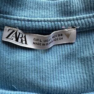 Zara Blue Ruffle Sleeve Ribbed Crop Top