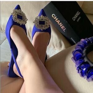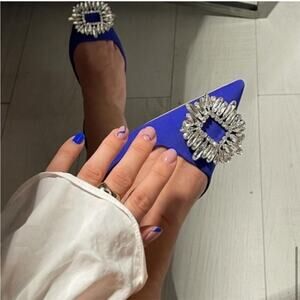 Zara Blue SHIMMERY MID-HEEL SLINGBACK SHOES