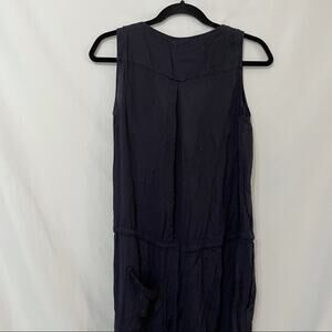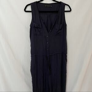 Zara Blue Sleeveless Button Cinch Waist Jumpsuit Womens M Pocket Casual Spring
