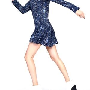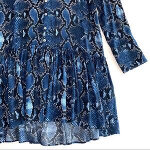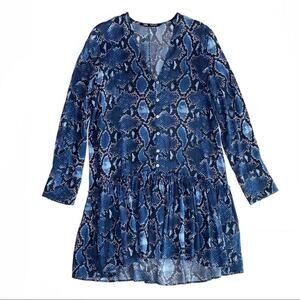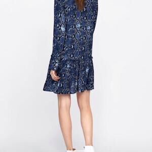 Zara Blue Snakeskin Print Long Sleeve Ruffle Shift Dress Size Small
