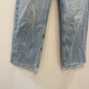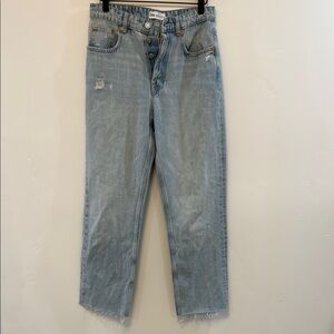 These Zara blue straight jeans offer a timeless look with their classic cut and comfortable fit. The denim features a light blue wash, perfect for a relaxed, everyday style. Ideal for casual occasions, these jeans provide a versatile addition to any wardrobe.