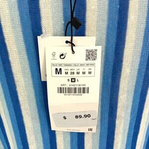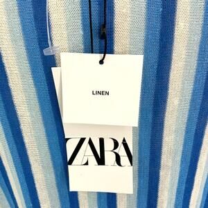 Zara Blue Striped V Neck Linen Blend Coverup Dress Size Medium NWT $90 MSRP