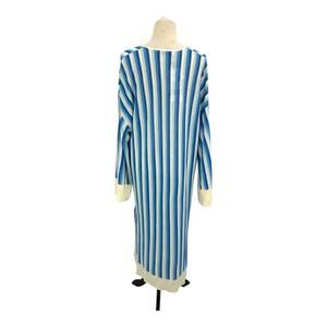 Zara Blue Striped V Neck Linen Blend Coverup Dress Size Medium