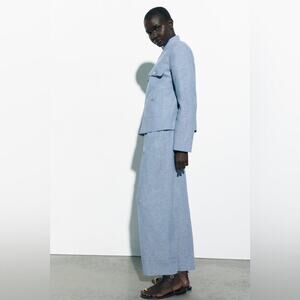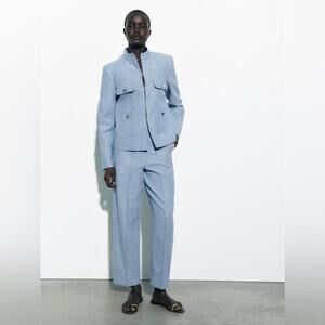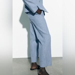 Zara Blue TURNED UP CUFF STRAIGHT LEG PANTS