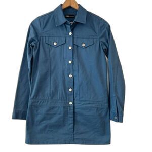 Zara Blue Utility Boiler Mini Dress Long Sleeves Small Cotton Denim Utility