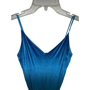 Zara Blue Velvet Spaghetti Strap Midi Dress Size Large Rhinestone Sexy Stretch