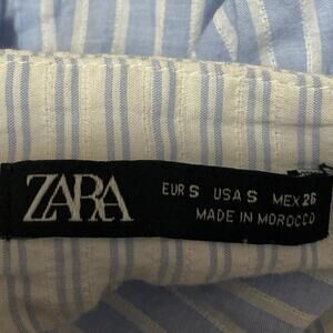 Zara Blue White Sleeveless Striped Cami Camisole Tank Peplum Crop Top Size S
