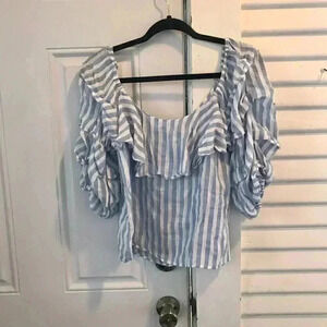 Zara Blue White Stripe Puff Sleeve Off Shoulder Blouse Small G48