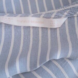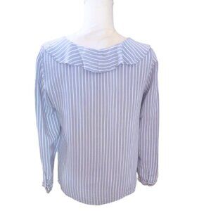 Zara Blue & White Striped Long Sleeve Ruffle Neckline Flowy Casual Blouse
