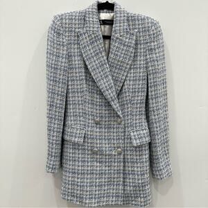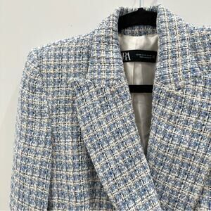 Zara Blue White Textured Tweed Double Breasted Blazer. Blogger fave. Like New