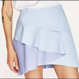 Zara Blue White Stripe Ruffle A-Line Mini Skirt