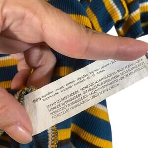 Zara Blue & Yellow Multicolor Striped Short Sleeve Cropped Top Women Sz L
