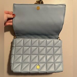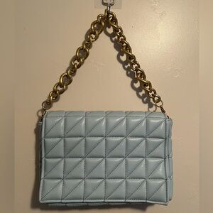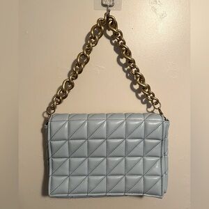 Zara Blue and Gold Quilted Shoulder Bag