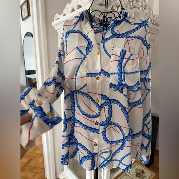 Chic blouse with blue and red rope design. Perfect for a stylish look. Only worn once