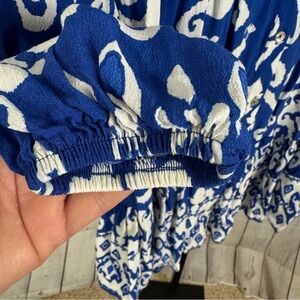 Zara Blue and White Floral Print Mini Babydoll Dress Size Small