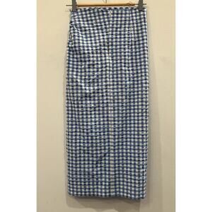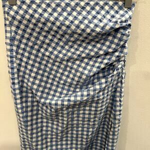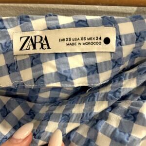Chic Zara midi skirt with a blue and white gingham pattern. Stylish and versatile for any occasion.
