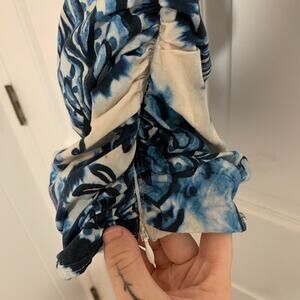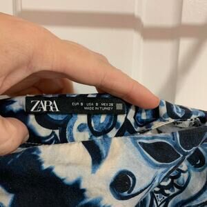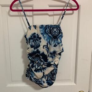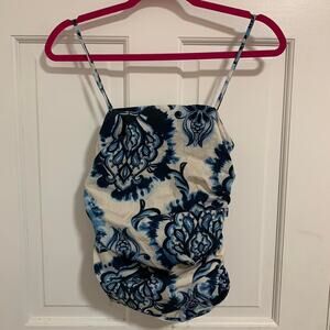 Zara Blue and White Paisley Design Runched Tank Top Size Small