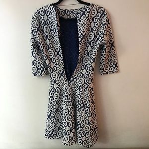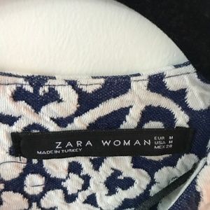Zara Adorable Blue and White Patterned Dress-- Elbow-length sleeve, perfect for the spring and wedding season! Absolutely adorable! Size Medium. Worn only twice!