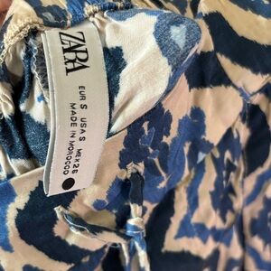 Stylish Zara pants with a bold blue and white pattern. Perfect for a chic look.