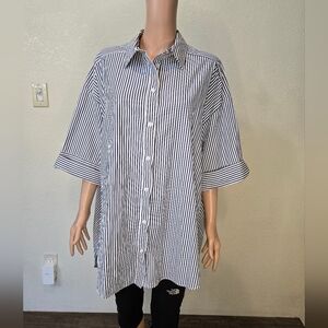 Zara Blue and White Striped Shirt Tunic Style Dress Oversized Size Small Medium