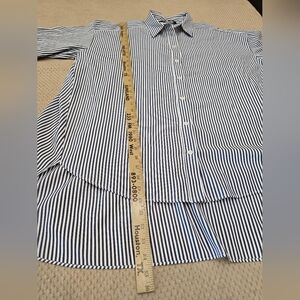This Zara tunic-style dress features blue and white stripes with an oversized fit, perfect for a casual or business occasion. The dress has short sleeves and a button closure, making it easy to wear during the summer or spring seasons. With a knee-length design and T-shirt dress style, this piece is a versatile addition to any wardrobe, suitable for a Holy Communion, party, or cocktail event. The size is small/medium and the brand is Zara.