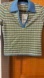 Stylish short-sleeve top. Features blue and yellow stripes. Classic collar design.