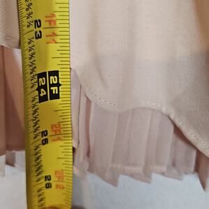 Zara Blush Beige Short Sleeve Asymmetrical Pleated Hem Blouse in excellent condition. A very light blush pink, beige color.